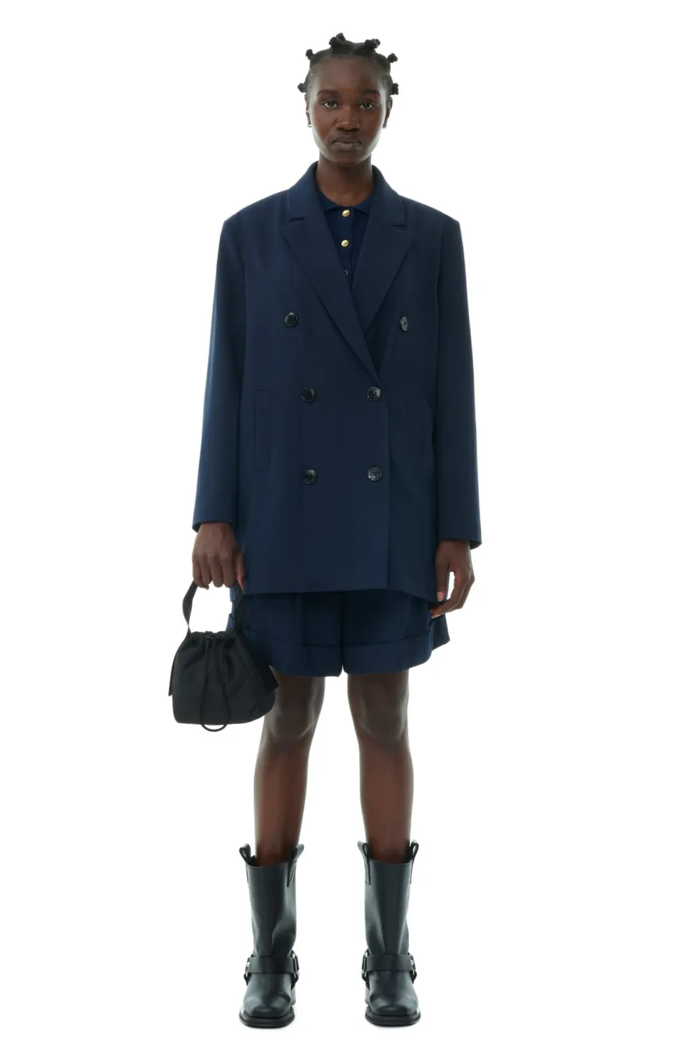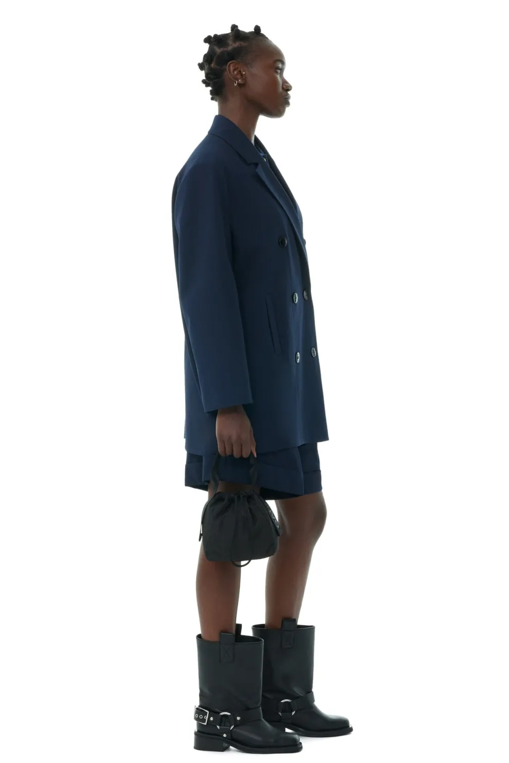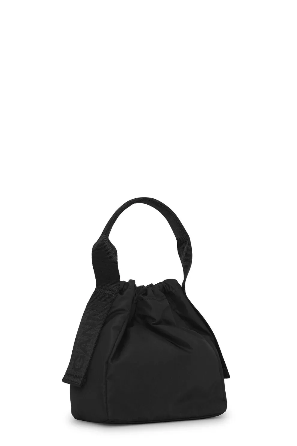 Ce sac pochette noir est doté d’une poignée supérieure en sangle, d’une fermeture à cordon et d’un logo GANNI.