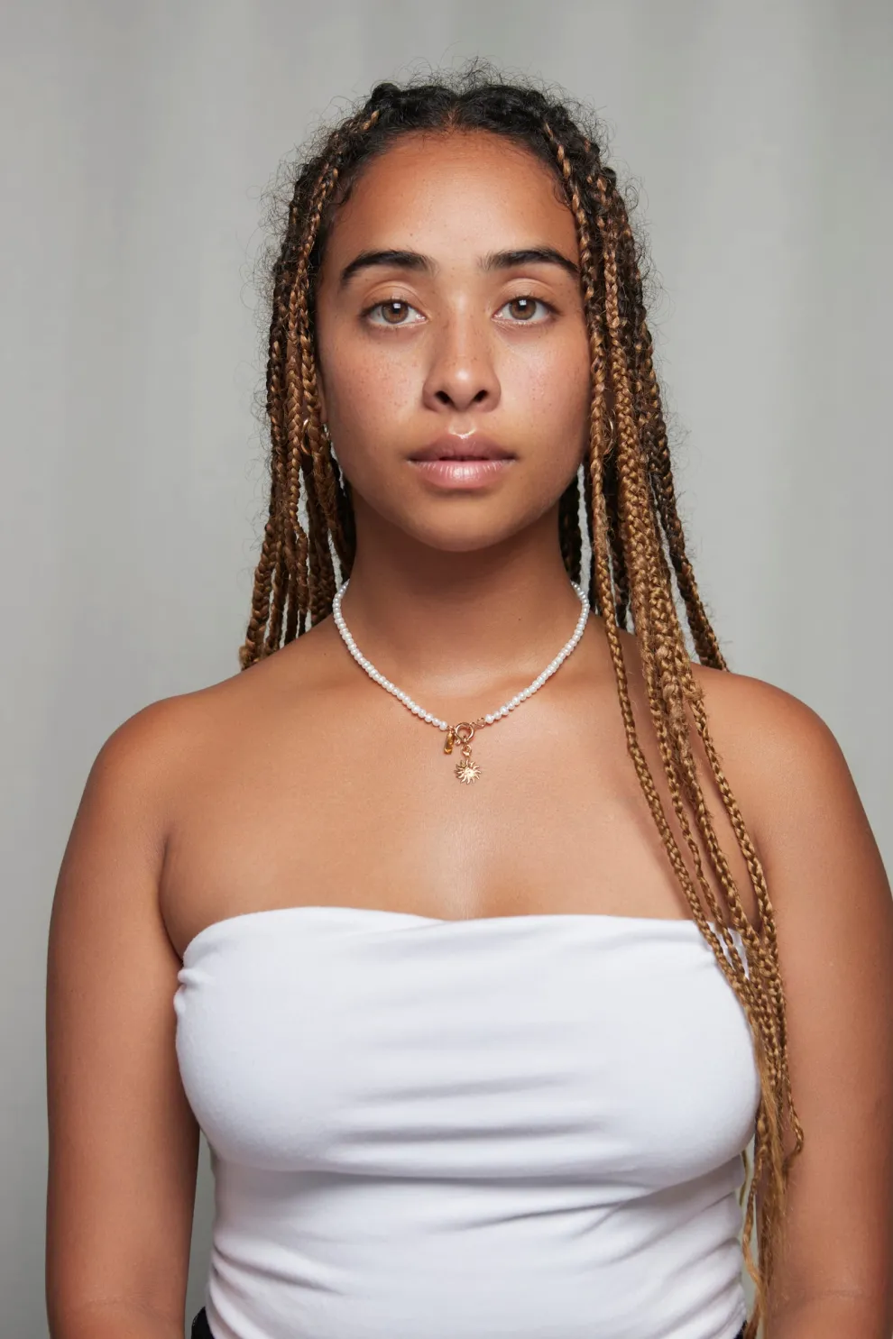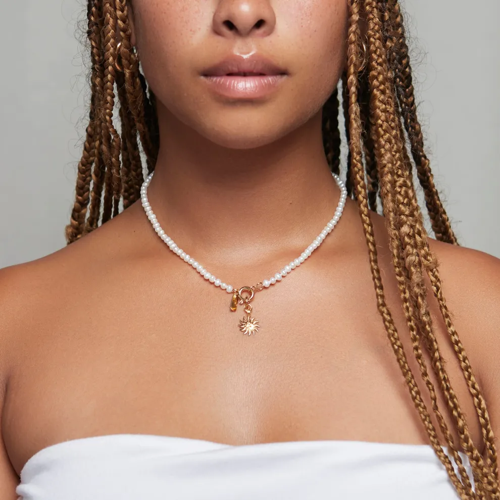 15.5″ Freshwater pearl necklace with medallion and gold colored clasp