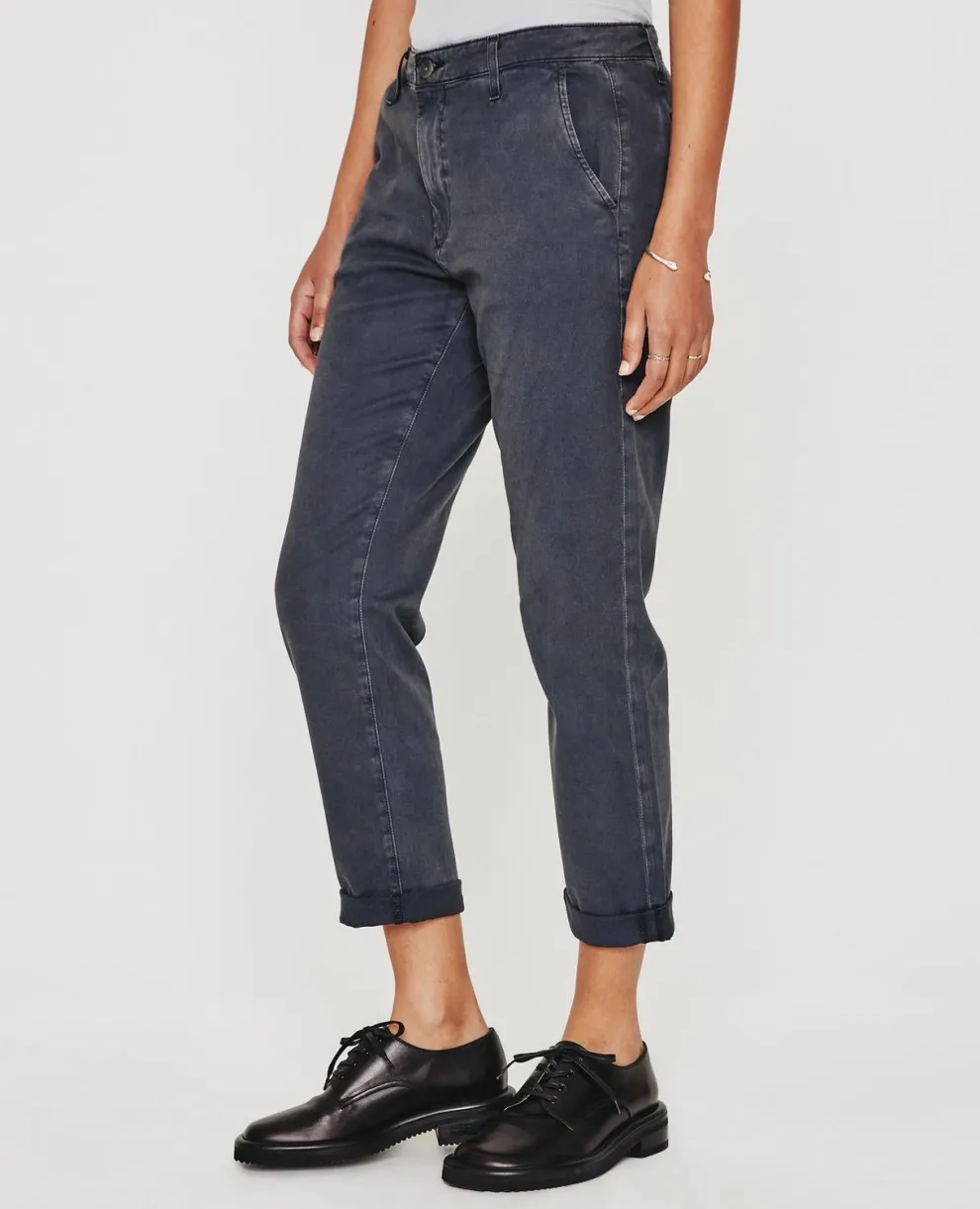 Luxurious broken stretch twill, 7.5 oz. 54% Cotton, 43 Lyocell, 3% Elastane. Imported.