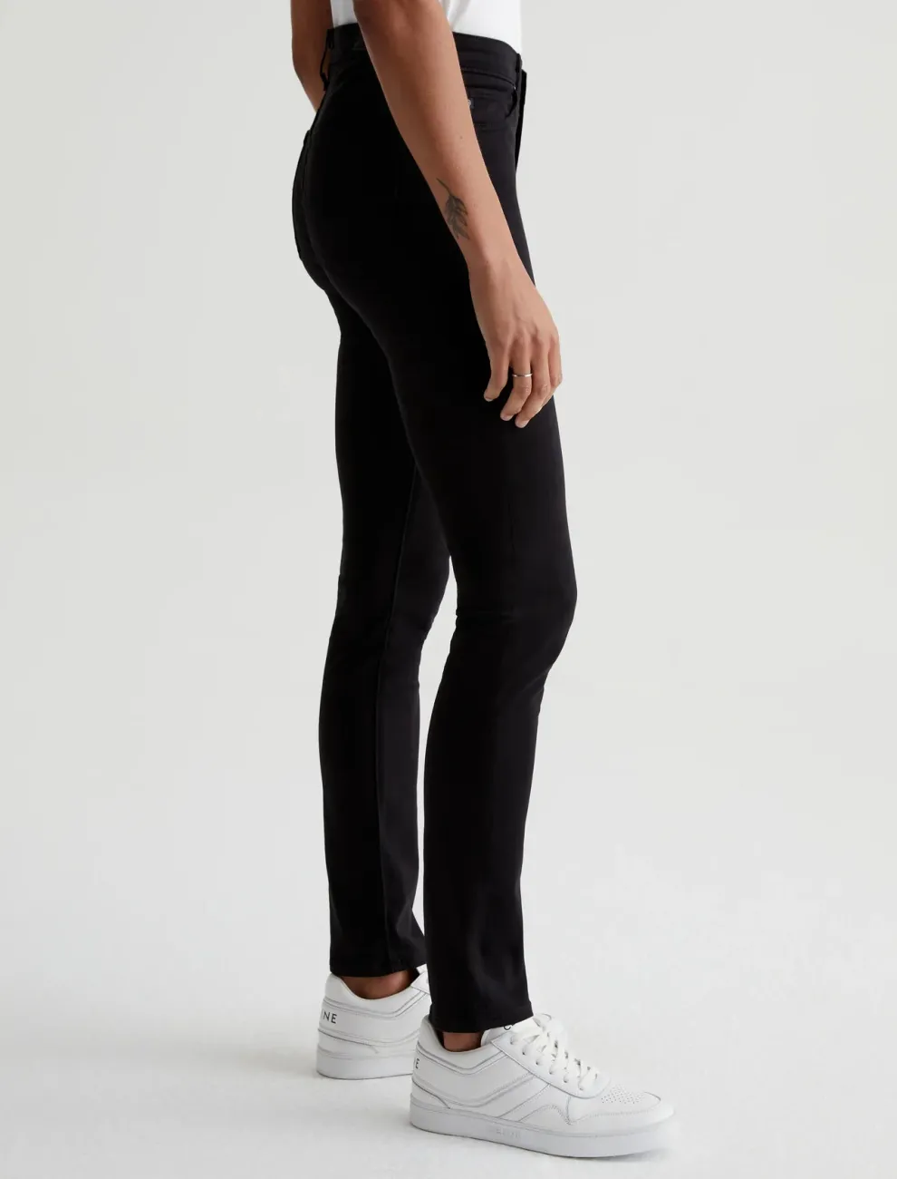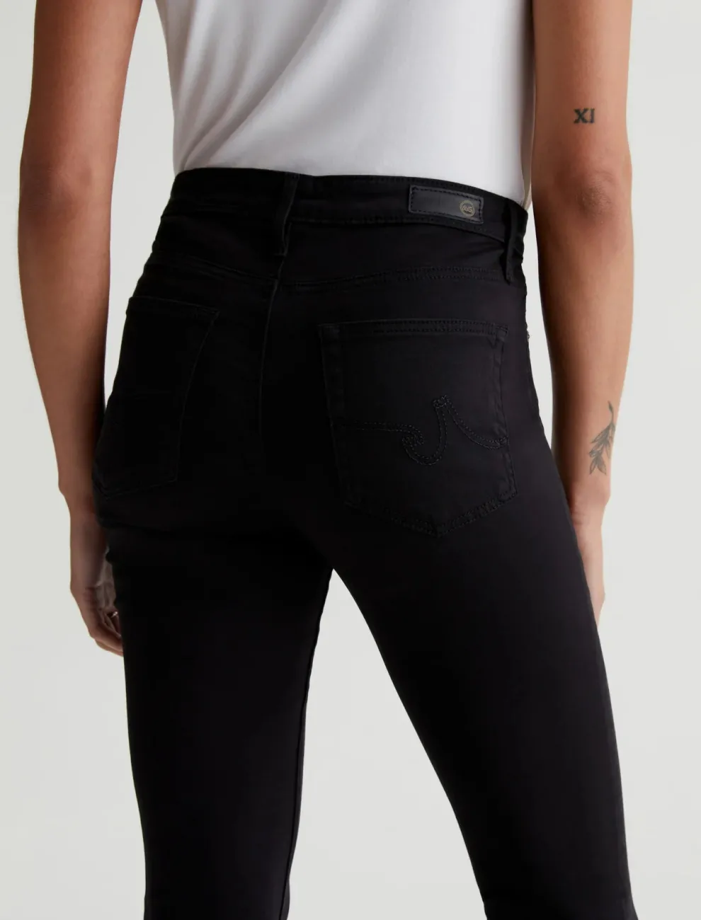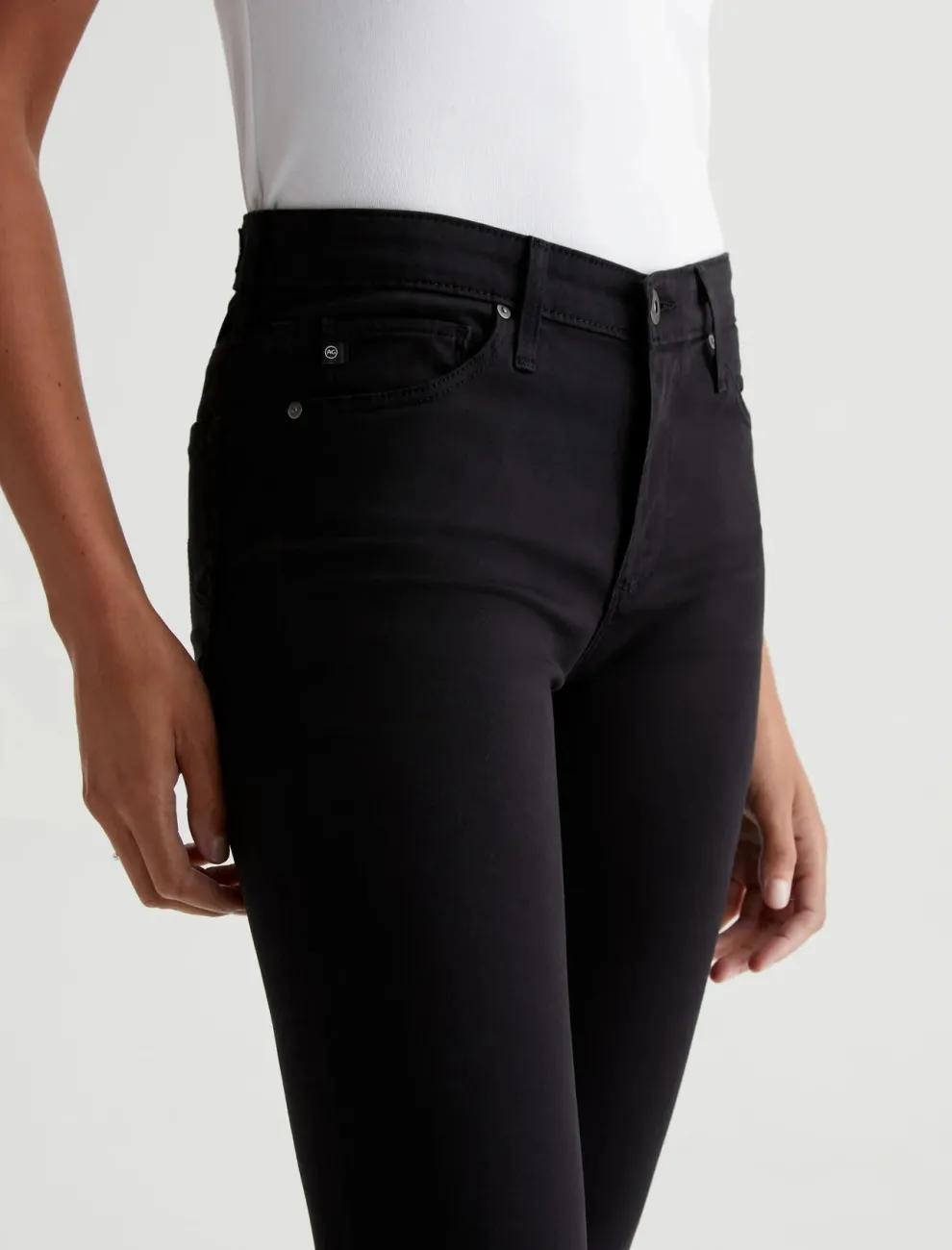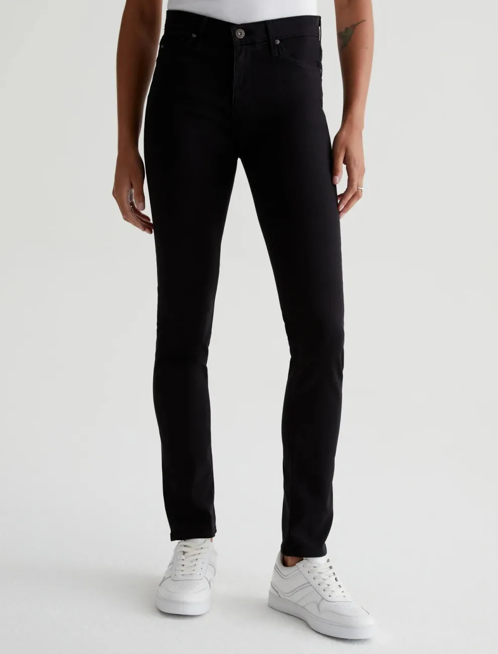 Le Prima est un pantalon cigarette pour femme avec dans une teinte noire profonde, coupé avec une silhouette ajustée aux hanches et légèrement fuselé sur la jambe. Ce jean offre un confortable port extensible et une sensation légère.