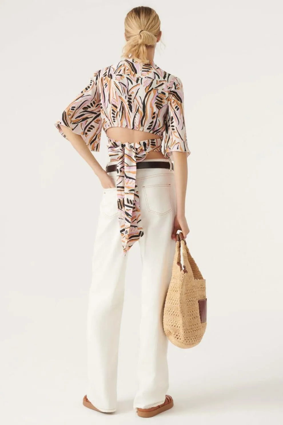 The TONKA top is sublime, sexy, glam… what more can I say! Its wrap cut makes it irresistible and its prints, butterfly sleeves, front yoke and gathered back inimitable! It is made of comfortable viscose, perfect for day and evening. We love its 70s vibe and adaptability. You can wear it rolled up in the front and tied in the back or vice versa, it’s up to you! Wear it with wide high-waisted jeans or a mini-skirt and trainers!