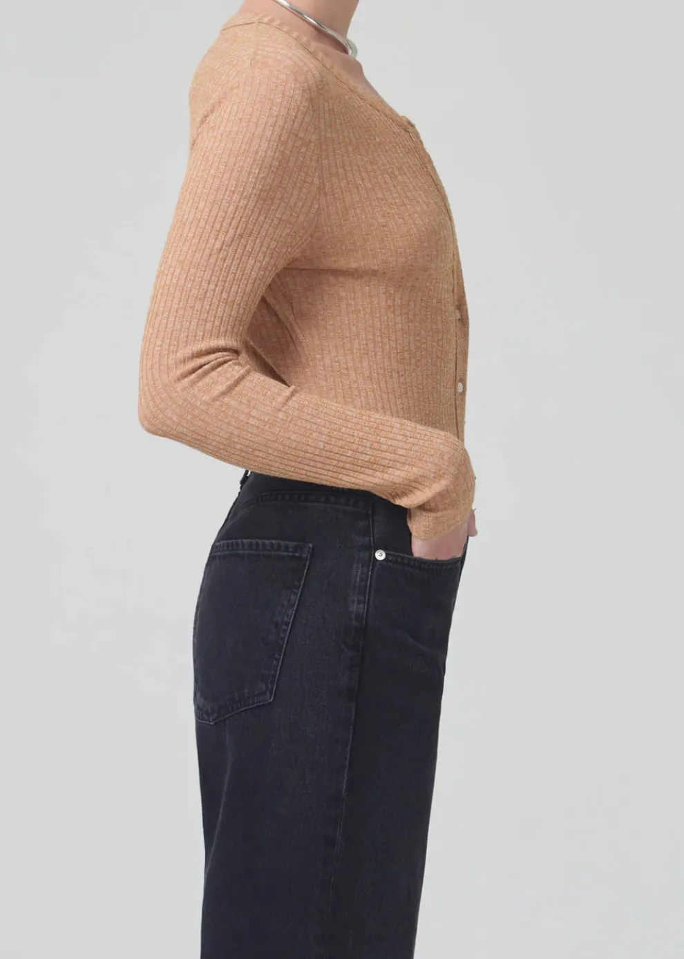 The perfect rib knit cardigan your wardrobe has been looking for. Designed with a slim fit throughout the body and a flattering neckline, the Sadie can be worn with anything and everything from jeans to your favorite denim cuts.