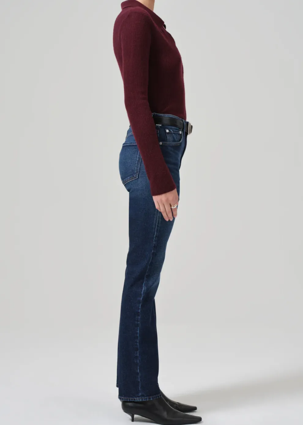 Le modèle Zurie présente une taille cintrée et un haut bien ajusté qui repose sur le corps avec juste ce qu’il faut d’aisance. La silhouette de la jambe est sculptée pour créer une forme élégante en arc, ce qui distingue ce pantalon droit des autres.
