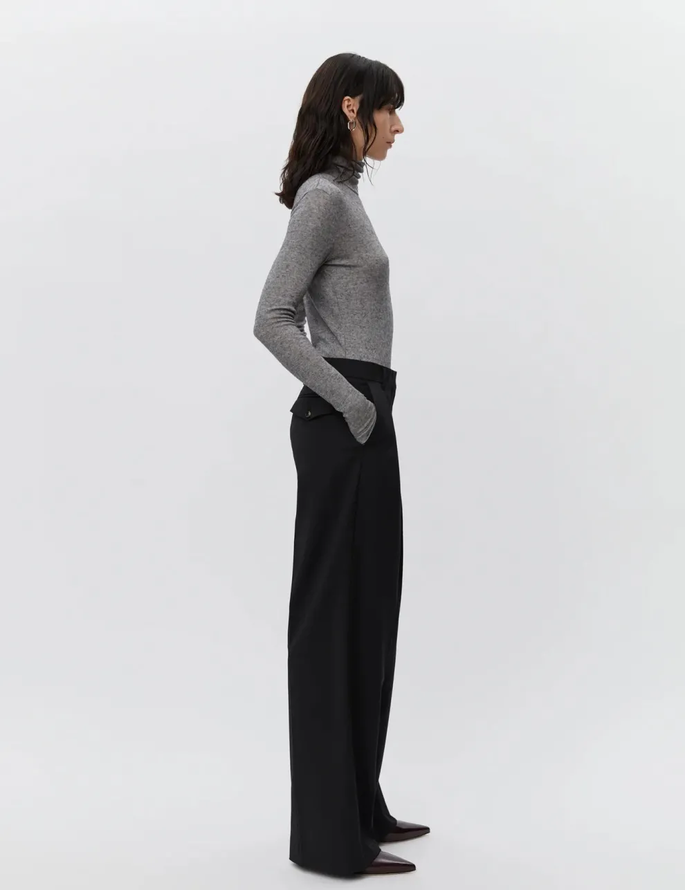 Ces pantalons à taille haute et jambes larges sont dotés de plis à la taille, d’une braguette zippée avec fermeture à crochetet de poches latérales. Ils possèdent également une poche passepoilée à l’arrière. Ils offrent une coupe régulière, combinant confort et sophistication.
