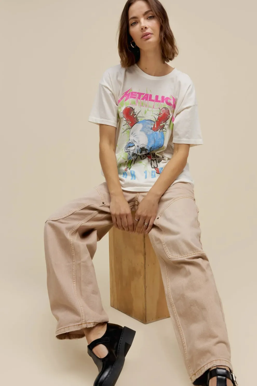 Une nouveauté pour votre collection Metallica. Inspirée de la tournée Damage, Inc. des légendes du métal, en soutien de leur troisième album studio, “Master of Puppets”. Présentant une interprétation authentique d’un graphique de crâne tiré de l’œuvre d’art originale de la tournée, marqué avec des lettres découpées et collées, semblables à un poster et le logo du groupe au centre de la poitrine.