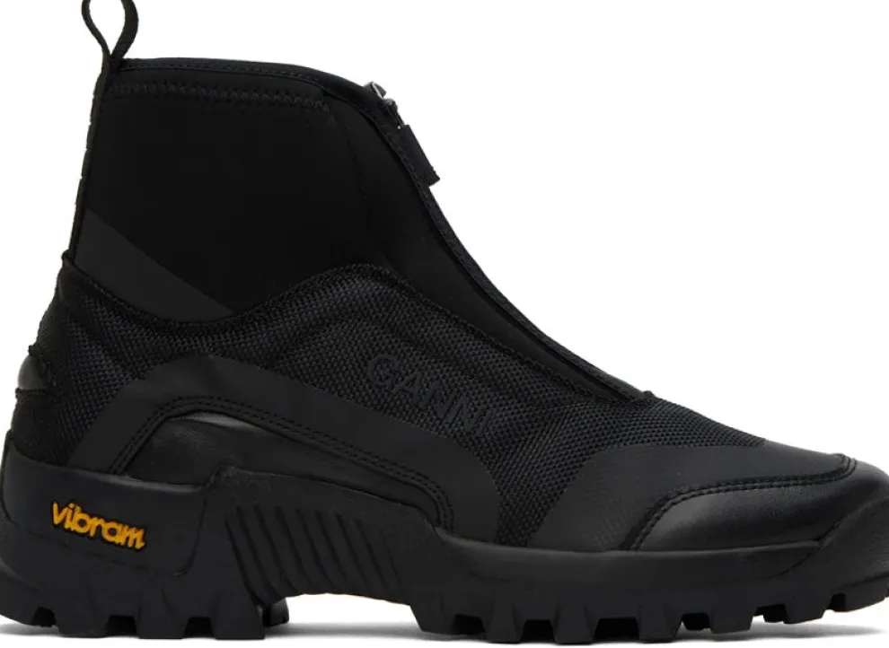 These high-top performance boots in black feature a zipper, stretch neoprene upper, pull tab, Vibram sole and discreet GANNI logo.