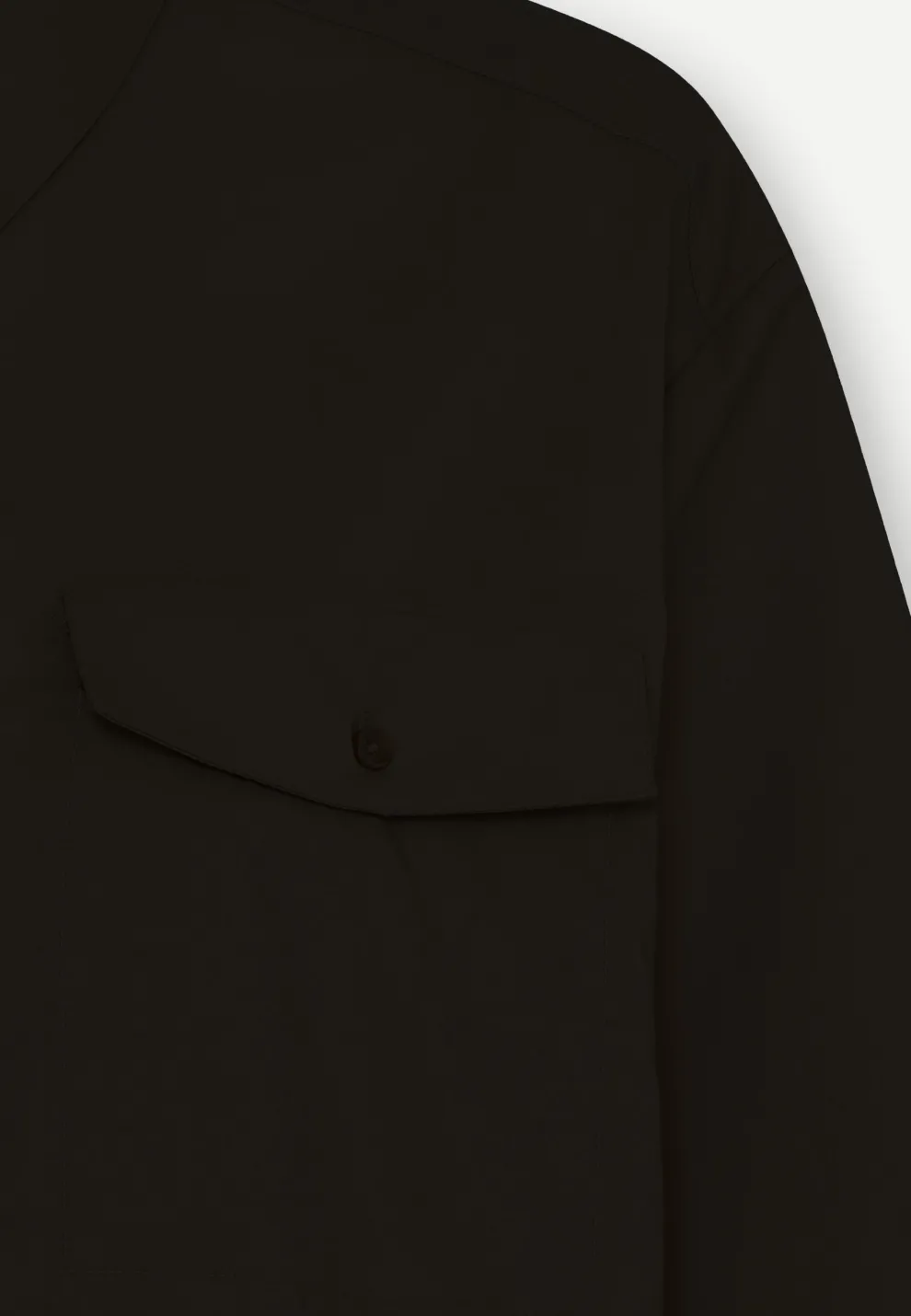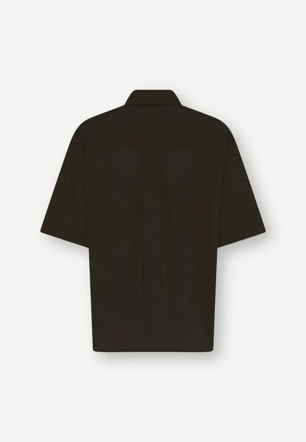 La chemise Helle est une chemise ample avec des manches courtes, des épaules tombantes et des poches plaquées sur la poitrine.