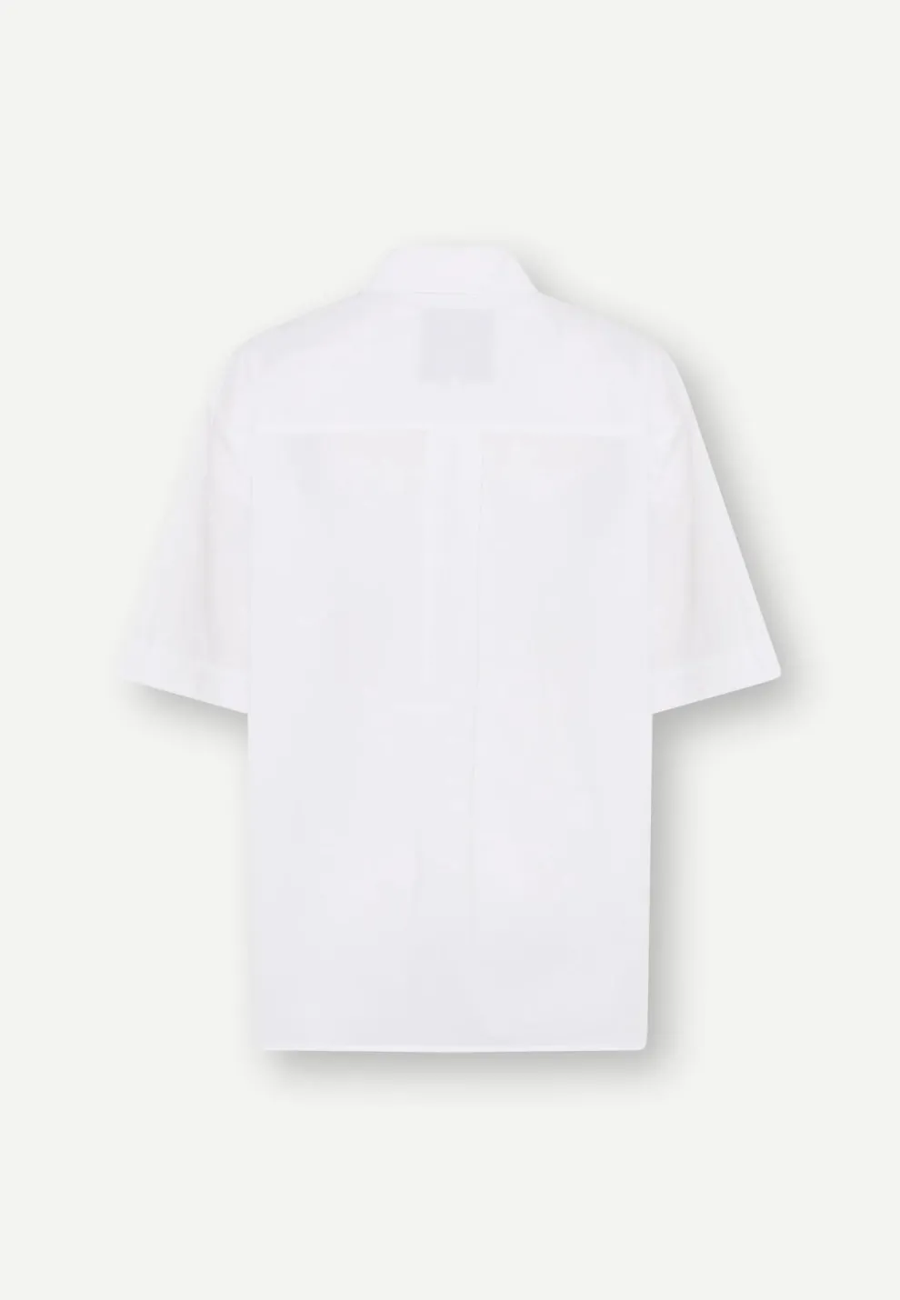 La chemise Helle est une chemise ample avec des manches courtes, des épaules tombantes et des poches plaquées sur la poitrine.