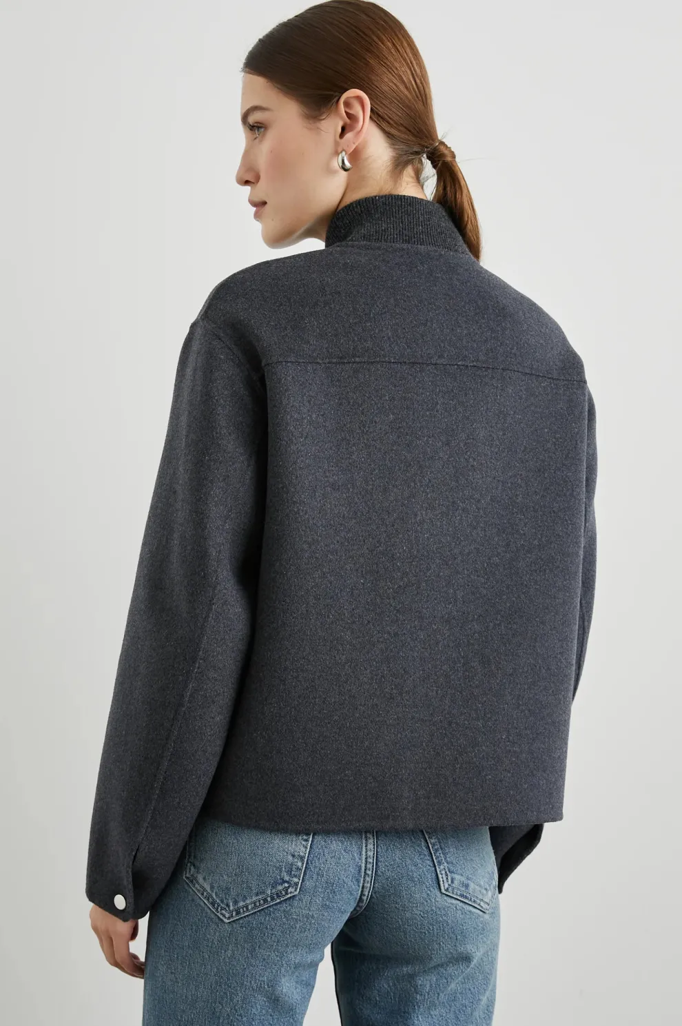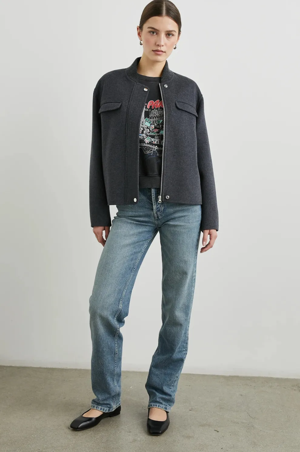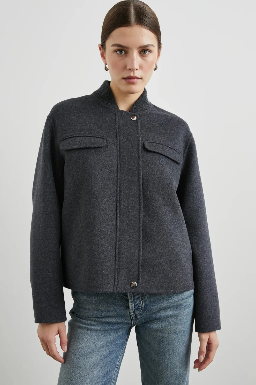 Lorsque vous n’avez pas envie de porter un manteau, essayez la veste Kinsley. Confectionnée en un mélange de laine épaisse, cette veste offre des caractéristiques utilitaires fonctionnelles comme des poches poitrine doubles et une fermeture éclair cachée avec des boutons-pression argentés. Avec sa silhouette arrondie et carrée, c’est un basique intemporel qui peut être habillé ou décontracté pour toute aventure.