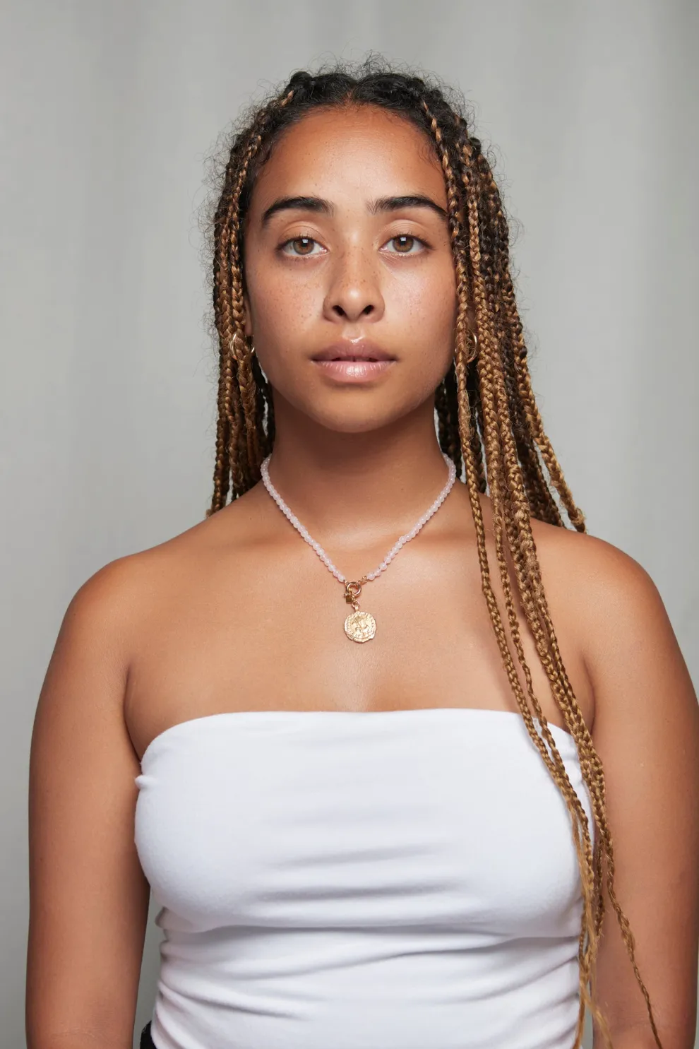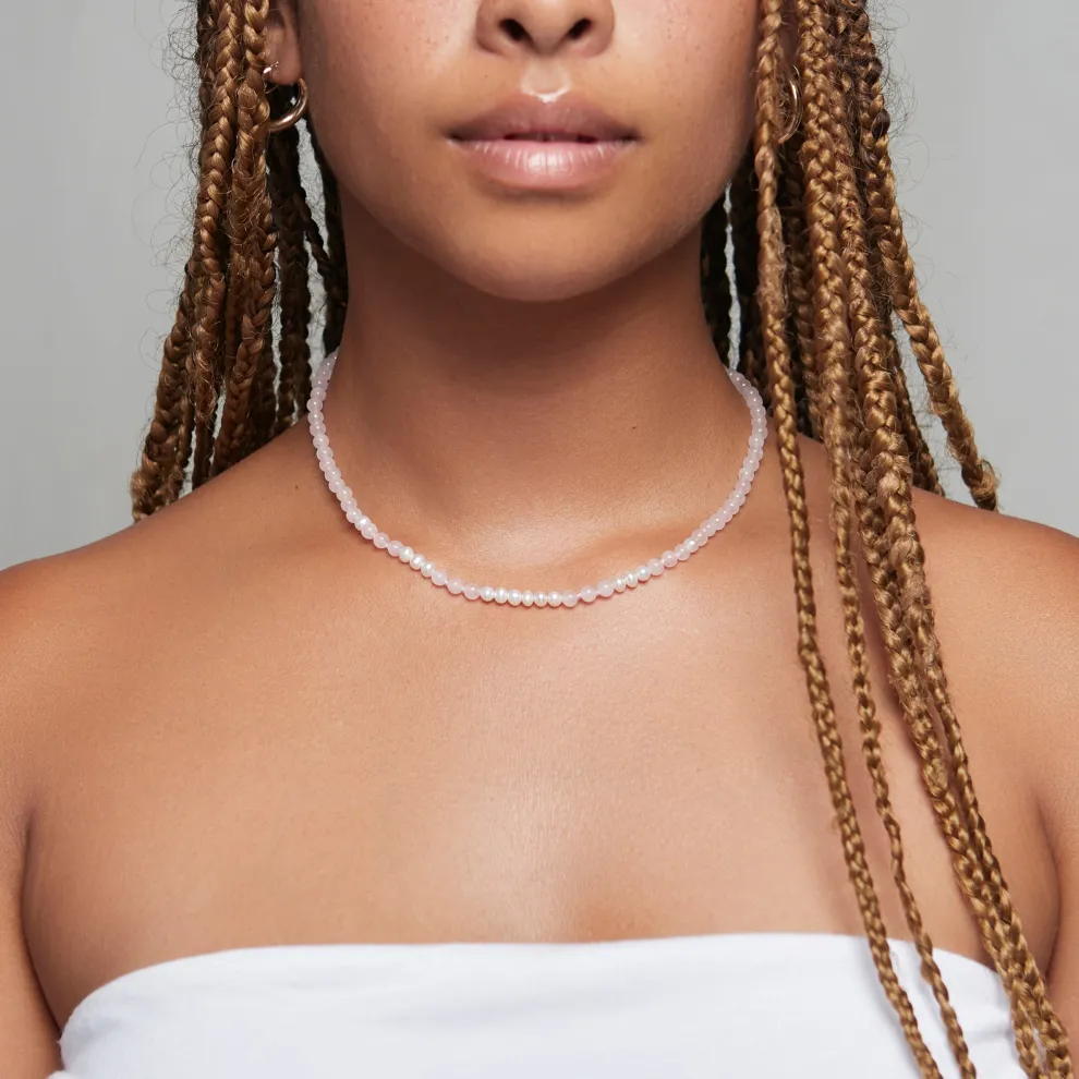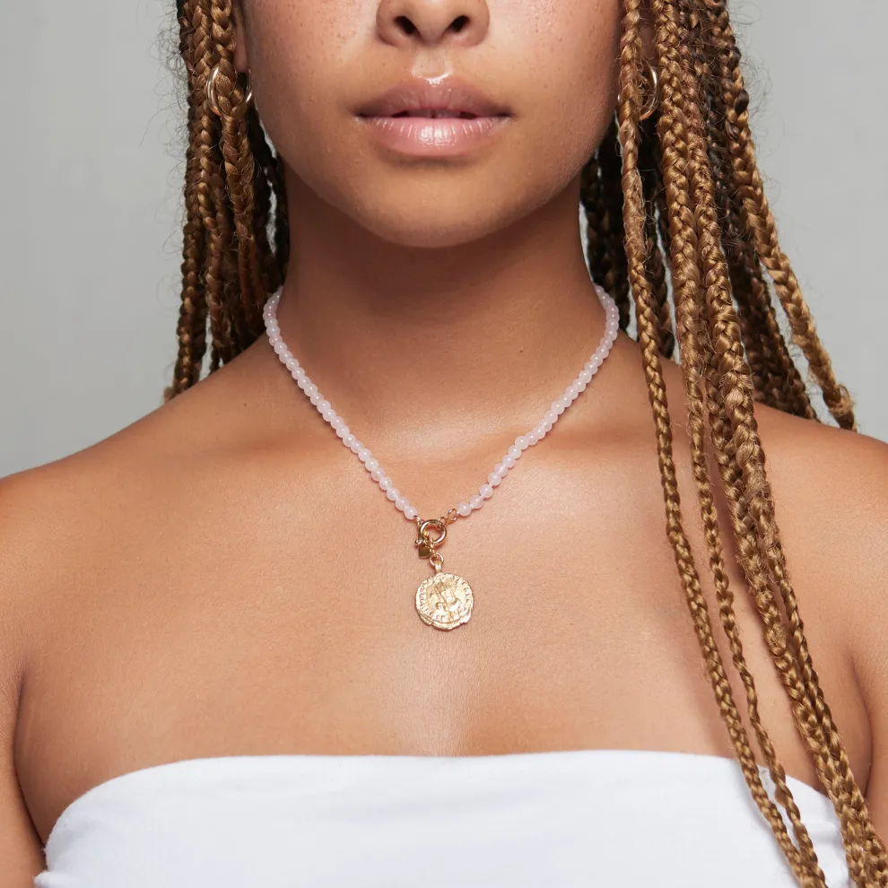 15.5″ Rose Quartz Beaded Necklace with Medallion and Gold Tone Clasp